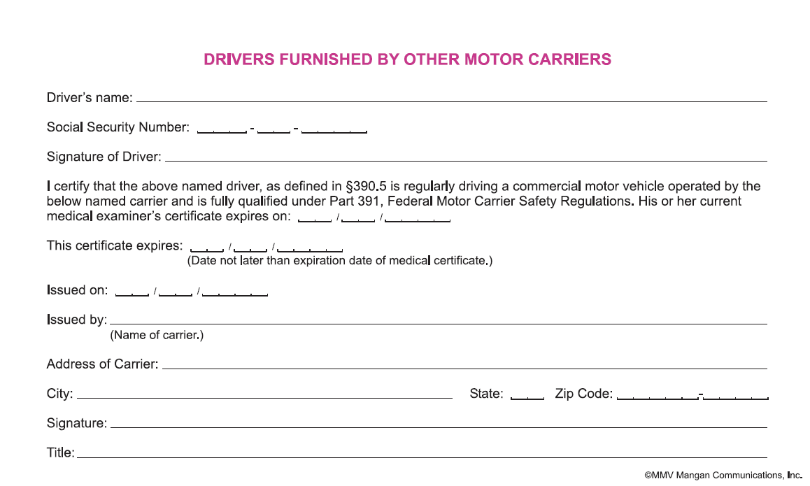 Guidance: No. If the motor carrier chooses not to accept the certificate issued by the regularly employing motor carrier furnishing the driver, the motor carrier must then assume responsibility for assuring itself that the driver is fully qualified in accordance with part 391.