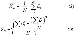 Next we compute the arithmetic mean and standard deviations of the differences, using equations (2) and (3), respectively.