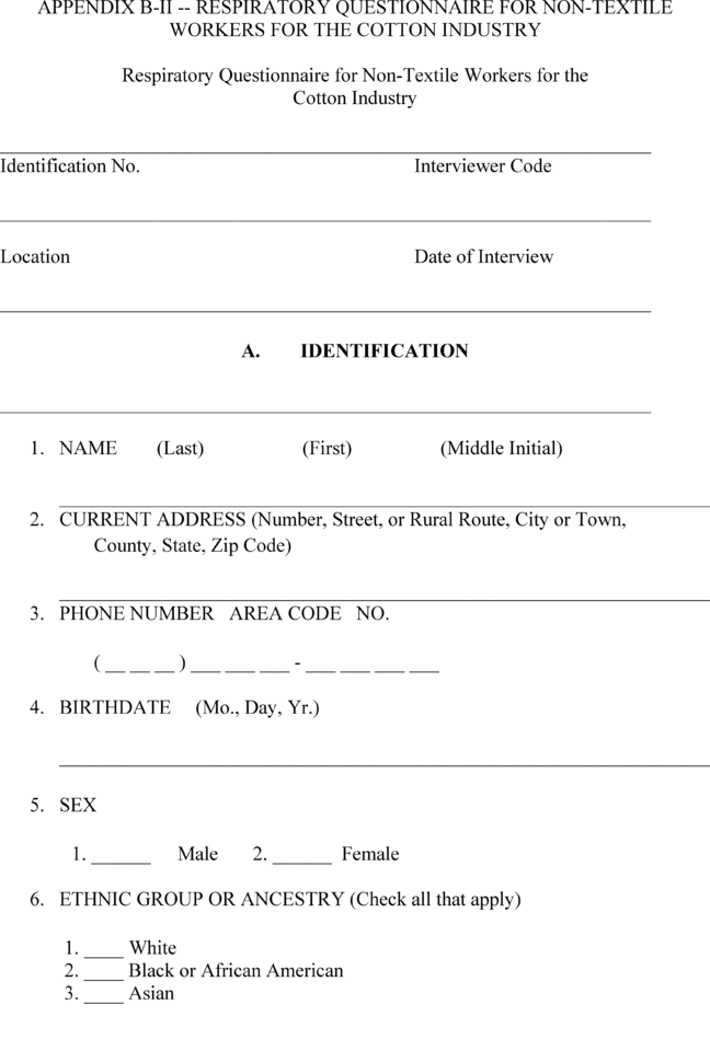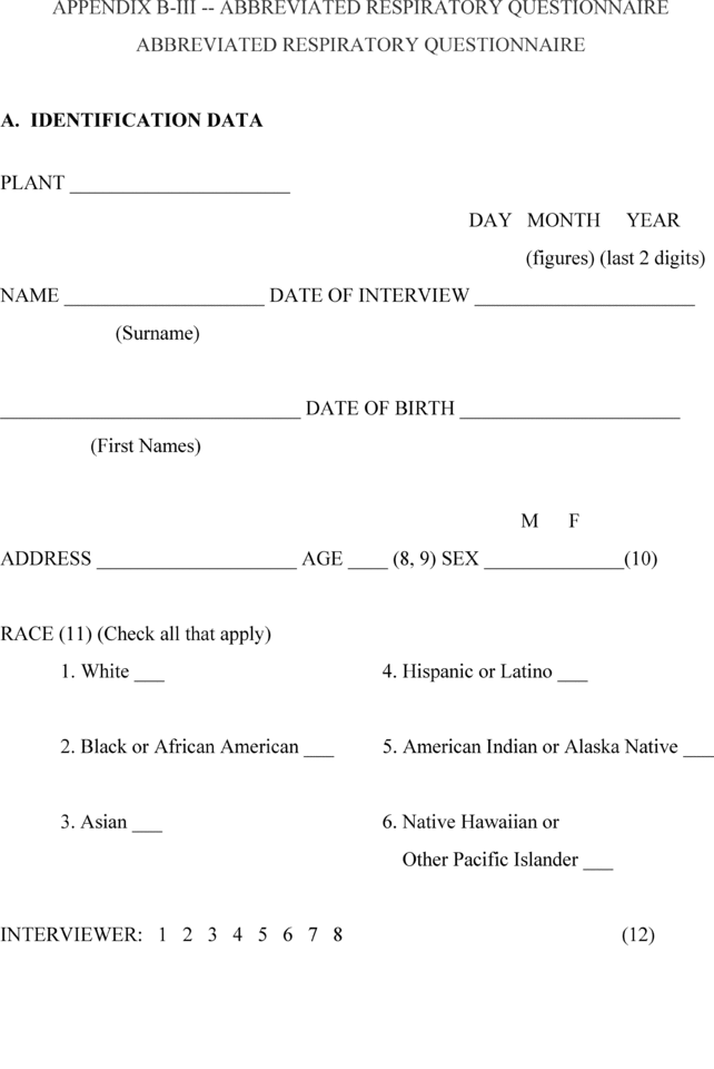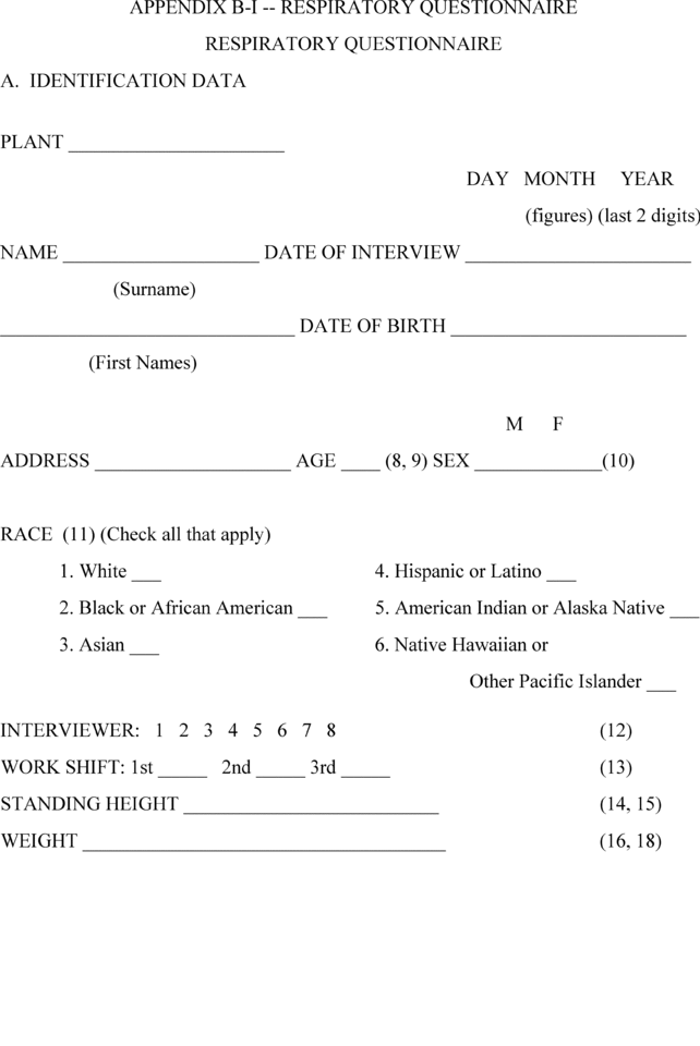 Appendix B to §1910.1043 — Respiratory Questionnaires
