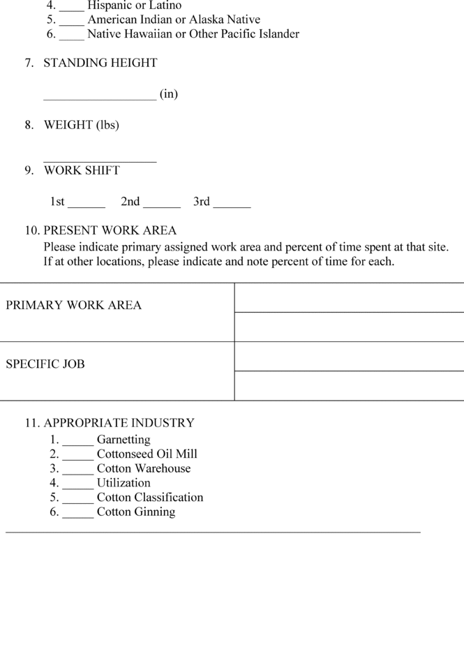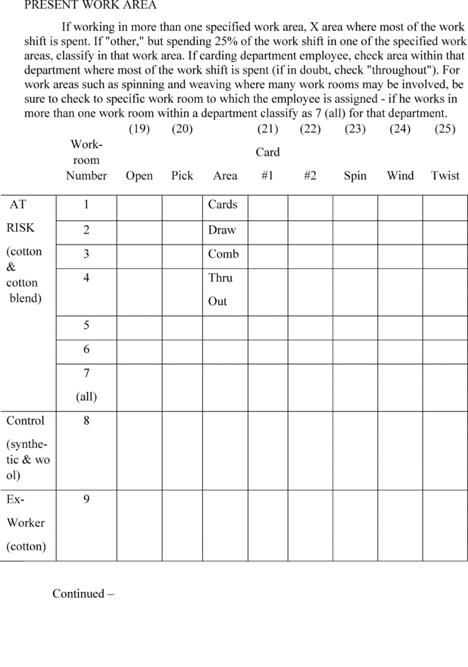 Respiratory questionnaire for non-textile workers for the cotton industry