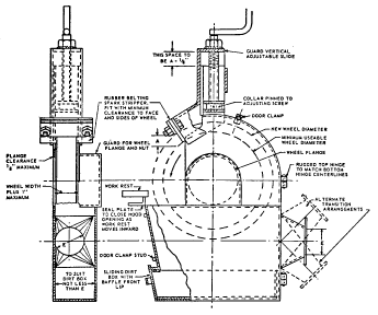 Operators shall be equipped with heavy canvas or leather gloves and aprons or equivalent protection to protect them from the impact of abrasives. Safety shoes shall be worn to protect against foot injury where heavy pieces of work are handled.