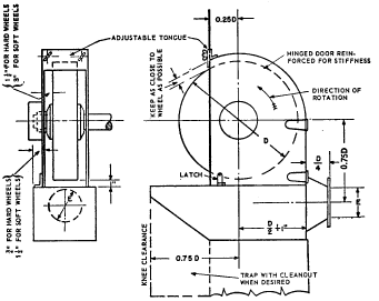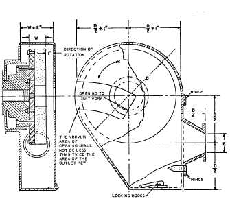 Design and operation. Exhaust fans, jets, ducts, hoods, separators, and all necessary appurtenances, including refuse receptacles, shall be so designed, constructed, maintained and operated as to ensure the required protection by maintaining a volume and velocity of exhaust air sufficient to gather dusts, fumes, vapors, or gases from said equipment or process, and to convey them to suitable points of safe disposal, thereby preventing their dispersion in harmful quantities into the atmosphere where employees work.