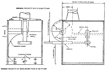 Blast-cleaning enclosures shall be exhaust ventilated in such a way that a continuous inward flow of air will be maintained at all openings in the enclosure during the blasting operation.