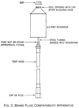 Preparation. Utilize an air brake tubing assembly or prepare a 12 inch length of tubing and install end fittings according to the end fitting manufacturer's instructions. Attach one end of the assembly to the hydraulic pressure supply and plug the other end of the assembly, fill the assembly with ASTM IRM 903 oil and bleed any air from the assembly, and place the tubing assembly inside an environmental chamber. Conduct the following tests: