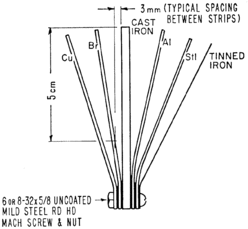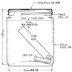 No crystalline deposit shall form and adhere to either the glass jar walls or the surface of the metal strips;