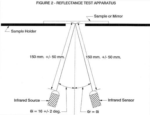 The intensity of incident infrared light is determined using a reference mirror of nominally 100 percent reflectance mounted in place of the sample in the test apparatus in Figure 2.