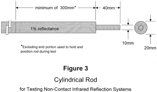 Rods for testing systems designed to detect obstructions by light beam interruption: Each test rod has the shape and dimensions specified in S8.1 and is, in addition, opaque to infrared, visible, and ultraviolet light.