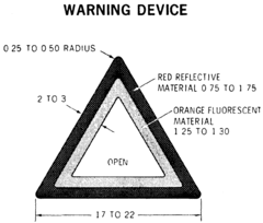 Each of the three sides of the triangular portion of the warning device shall not be less than 17 and not more than 22 inches long, and not less than 2 and not more than 3 inches wide (Figure 1).