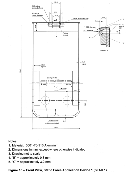 SFAD 2 means Static Force Application Device 2 shown in Figures 17 and 18 of this standard.