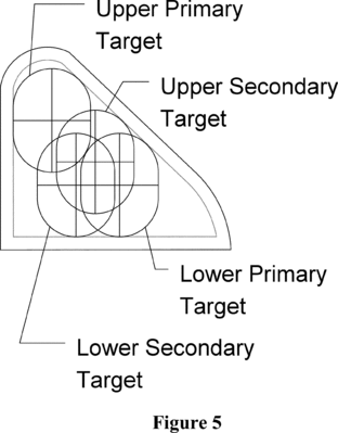 If a primary quadrant contains only one target center, that target is the primary target for that quadrant (see Figure 3) (figure provided for illustration purposes). If there is more than one target center in a primary quadrant, the primary target for that quadrant is the lowest target in a lower quadrant and the highest target in an upper quadrant. If there is a primary quadrant that does not contain a target center, the target center closest to the primary quadrant outline is the primary target.