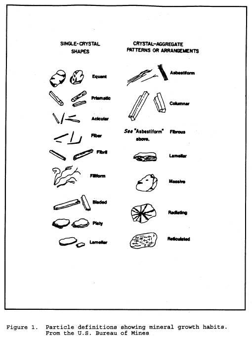 Campbell,W.J., et al, Relationship of Mineral Habit to Size Characteristics for Tremolite Fragments and Fibers, United States Department of the Interior, Bureau of Mines, Information Circular 8367, 1979.