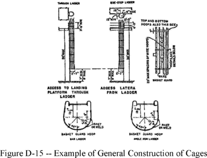 Cages and wells installed on fixed ladders are designed, constructed, and maintained to permit easy access to, and egress from, the ladder that they enclose (see Figures D-14 and D-15 of this section);