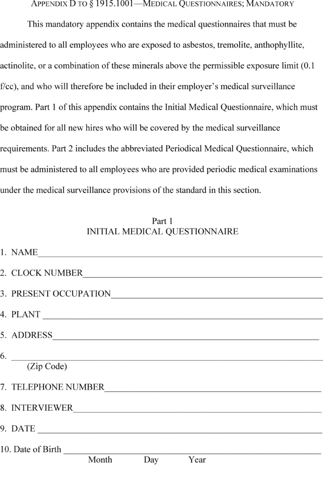 Asbestos, Code of Federal Regulations, 29 CFR 1910.1001 and 29 CFR 1926.58.
