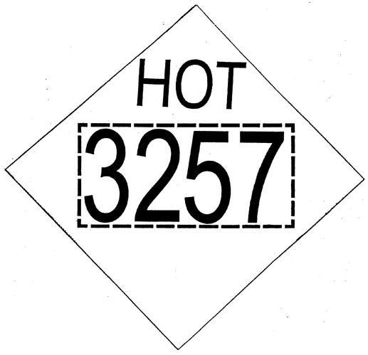 If the identification number is displayed on a white-square-on-point display configuration, as prescribed in §172.336(b), the word "HOT" may be displayed in the upper corner of the same white-square-on-point display configuration. The word "HOT" must be in black letters having a height of at least 50 mm (2.0 inches). Except for size, these markings shall be as illustrated for an Elevated temperature material, liquid, n.o.s.: