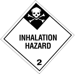 In addition to complying with §172.407, the background on the POISON GAS label and the symbol must be white. The background of the upper diamond must be black and the lower point of the upper diamond must be 14 mm (0.54 inches) above the horizontal center line.