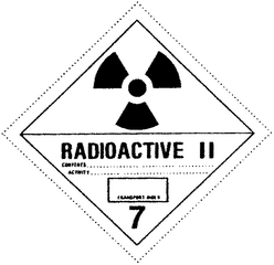 In addition to complying with §172.407, the background color on the RADIOACTIVE YELLOW-II label must be yellow in the top half and white in the lower half. The printing and symbol must be black, except for the "II" which must be red.