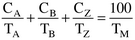 C = the % concentration of constituent A, B ... Z in the mixture;